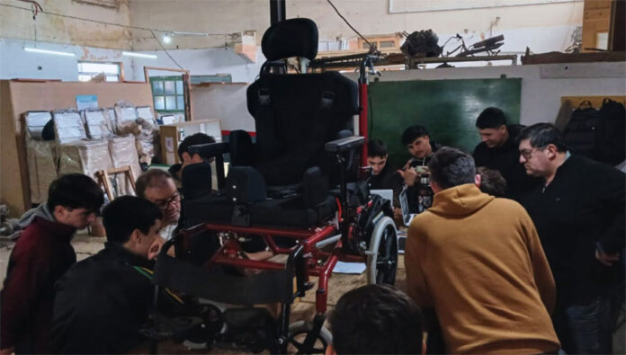 Estudiantes de la Escuela de Educación Técnica (EET) Nº 3 de Concepción del Uruguay reutilizaron aeropatines en desuso a fin de darle movilidad a sillas posturales para personas con discapacidad motriz.